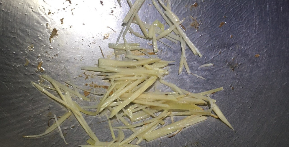 1・將麵腸切片、酸菜切絲、薑切絲。